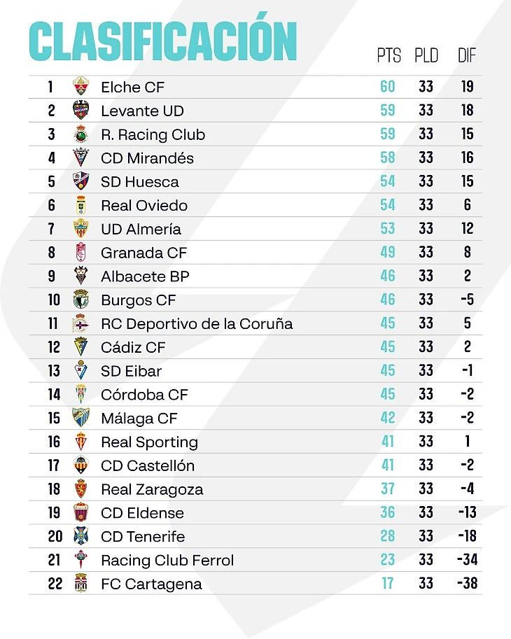 «Эльче» вернулся на первую строчку после победы над «Кордобой» Обольского (2:1). Оскар Плано в начале матча вывел «Эльче» вперед, на 28-й валенсийцы пропустили от Карлоса Альбаррана. Следующего гола ждали до самой концовки: результативно вышел на замену Эльбасан Рашани. Косовар на 89-й четко пробил головой после подачи Хосана и водрузил «Эльче» на вершину.
