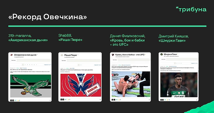 Сегодня вышло по одному посту от трех команд: «Рекорд Овечкина», «Хоккеисты Трибуны» и «Dream Team».