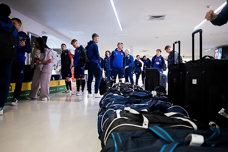 Нас разделили на две группы. Первая, тренеры и массажисты, летит первым рейсом, вторая, футболисты и Катя, наш менеджер и переводчик, через 20 минут.