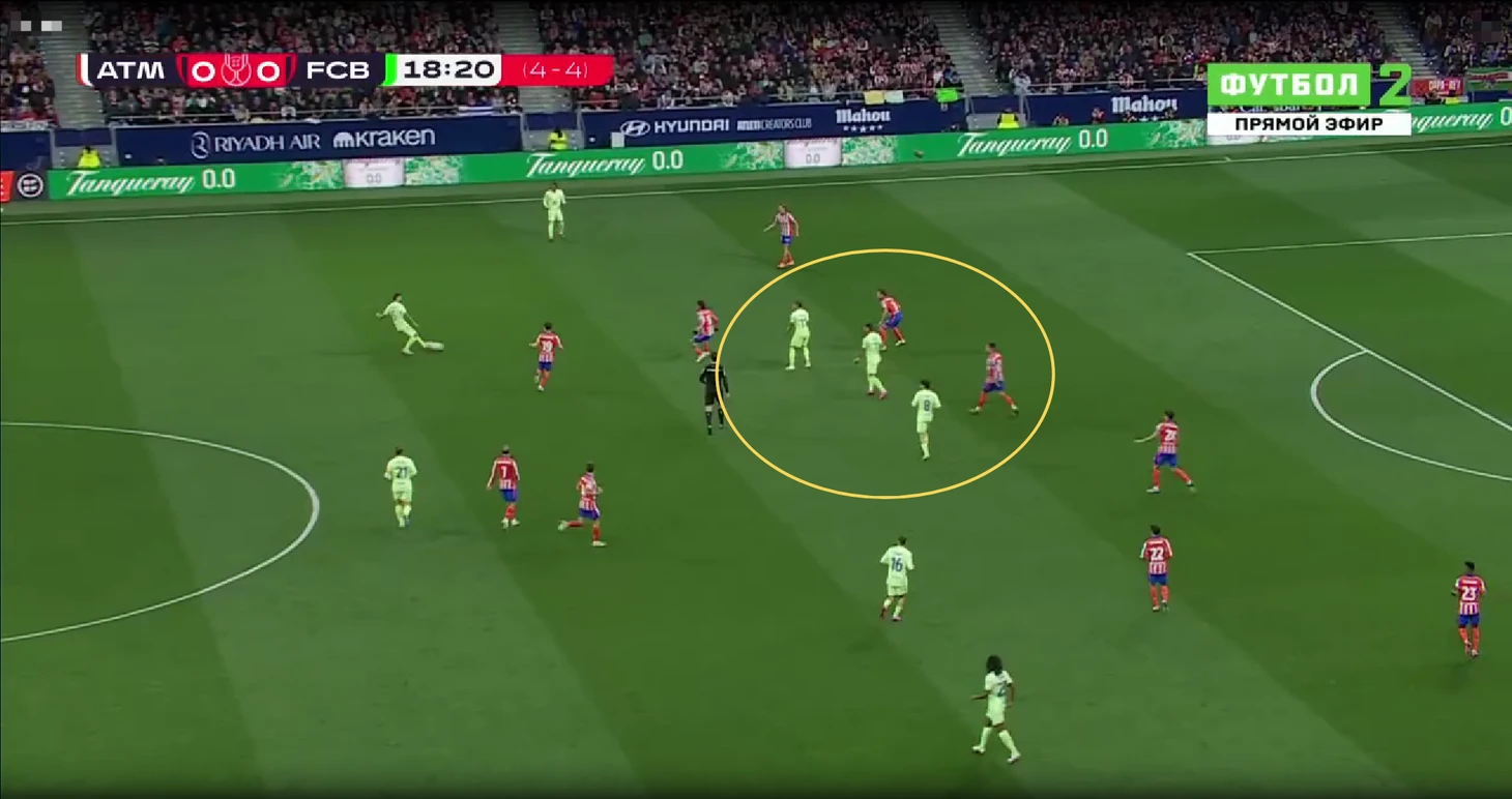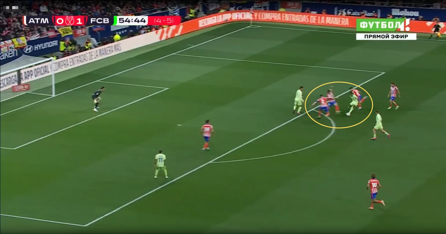 Одна из причин – прессинг «Барсы». В последнее время Флик стал чаще использовать новый вариант расположения игроков во время давления. Против «Атлетико» был знакомый по сезону прессинг с вингерами в более высоких позициях.
