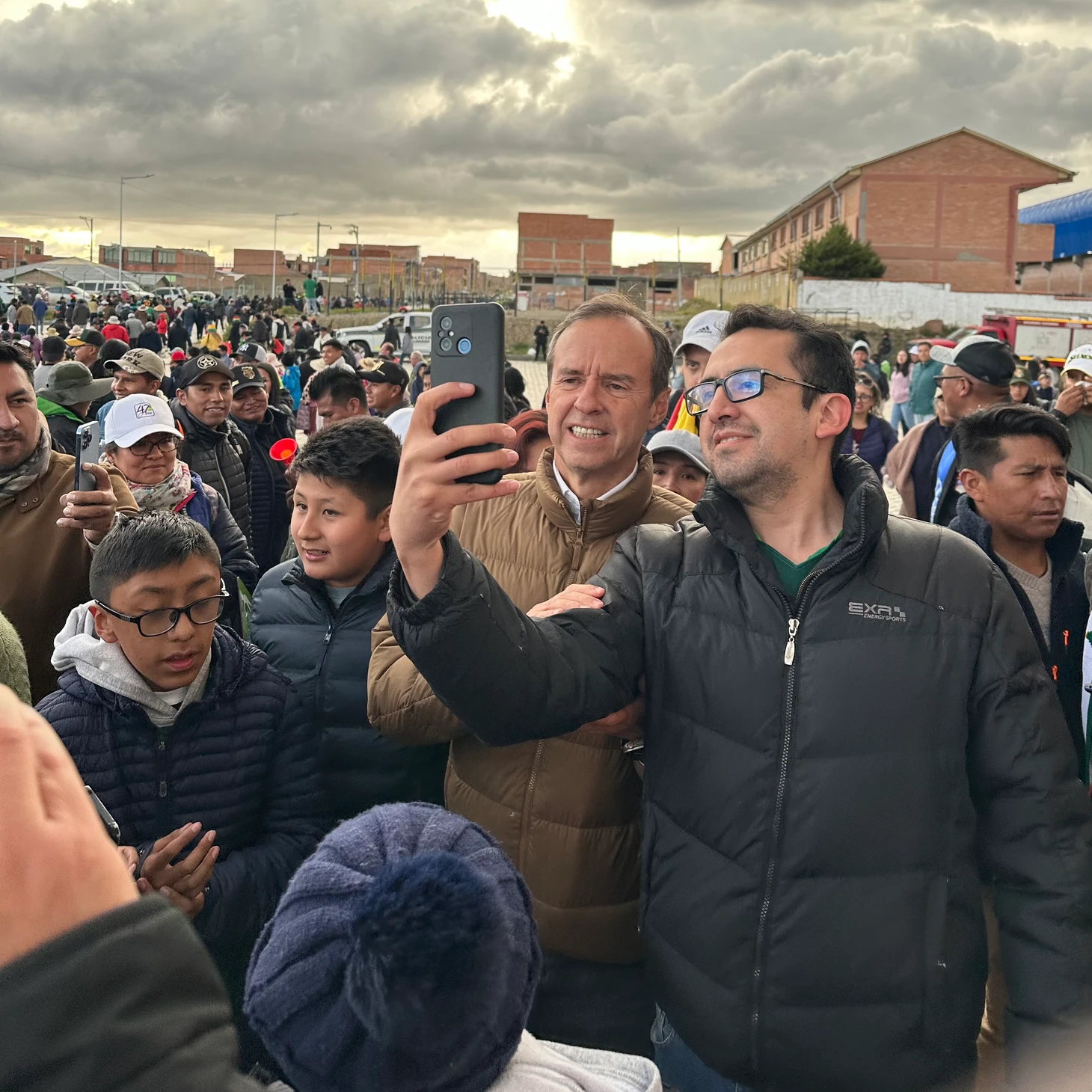 Выхожу cо стадиона. Толпа болельщиков с кем-то фотографируется, в это же время в эту же толпу порой летят пластиковые бутылки. В этот раз моя гипотеза оказалась ошибочной. Это не местная футбольная звезда, а бывший президент Хорхе Фернандо Кирога Рамирес и вроде как кандидат в президенты на предстоящих выборах.