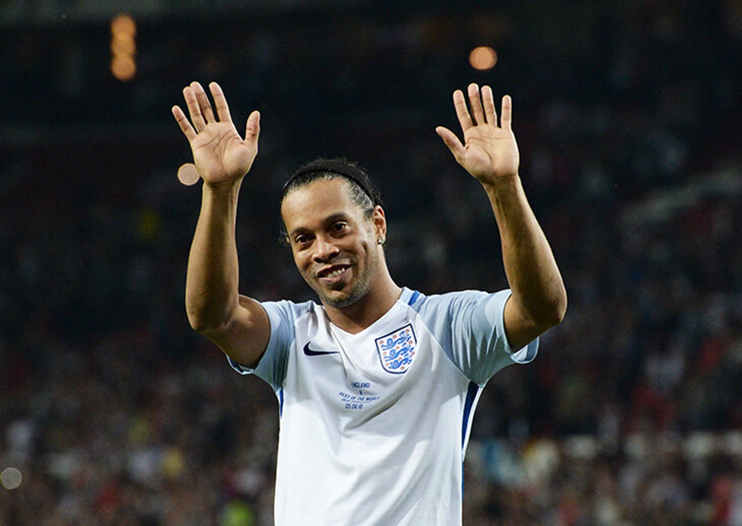 Роналдиньо во время благотворительного матча на «Олд Траффорд» сменил привычные бразильские цвета на футболку сборной Англии.