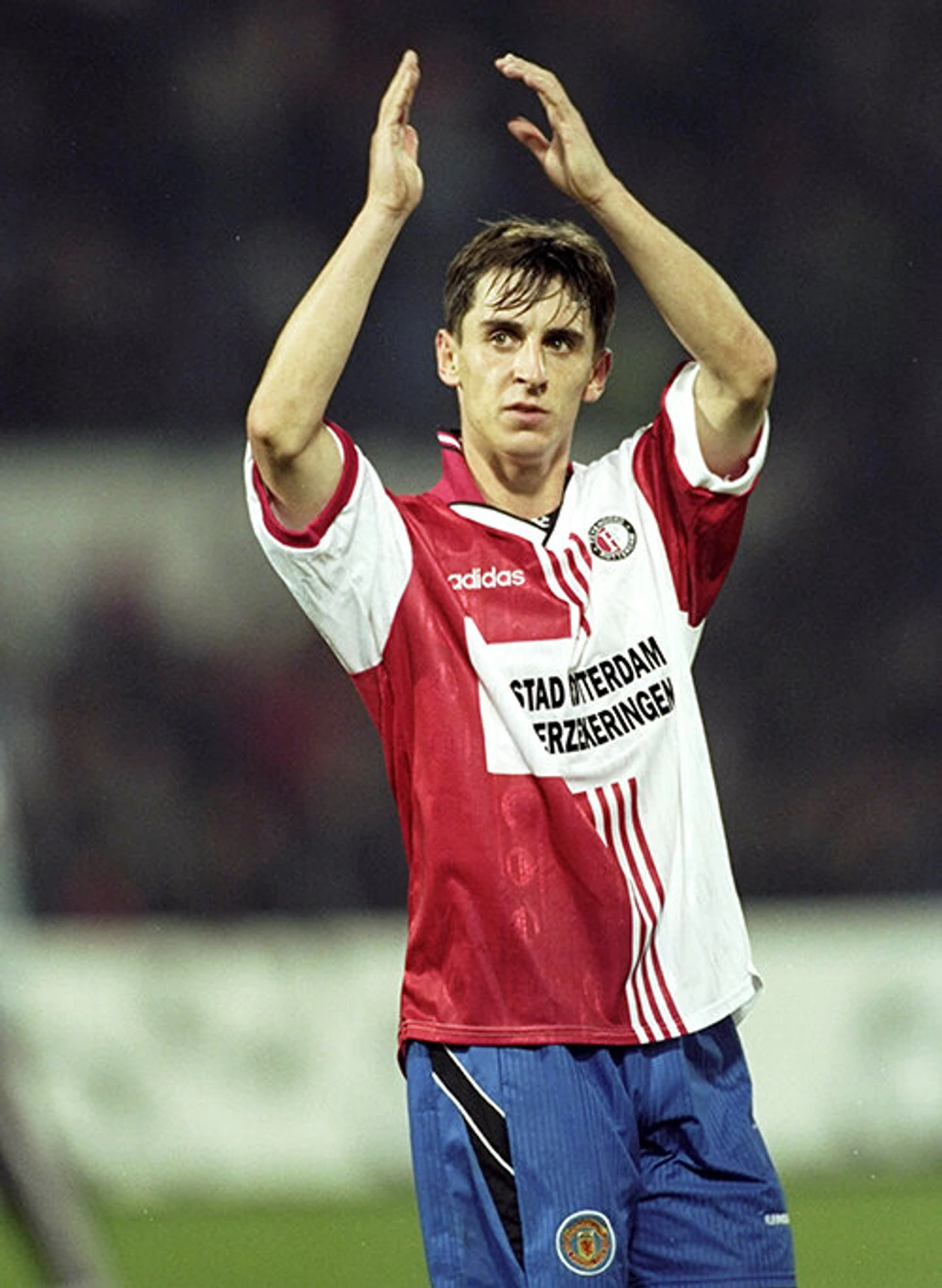 Гарри Невилл все карьеру провел в «Манчестер Юнайтед», но в 1997-м появился в футболке «Фейеноорда». Он поменялся футболками после победы «МЮ» в Лиге чемпионов (3:1).