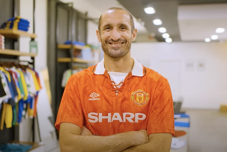 Легенда «Ювентуса» Джорджо Кьеллини позировал в классической форме «Юнайтед». Гари Невилл, Джейми Каррагер, Рой Кин и Иан Райт специально для Sky сняли сериал о путешествии по разным странам – Кьеллини принял их в Турине в футболке Кина.