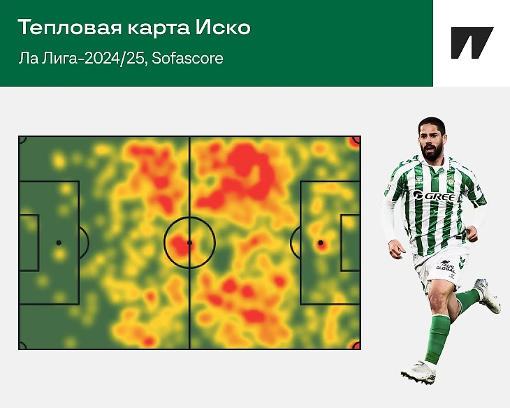 Фишка нынешнего Иско – контроль темпа игры. То, что делало его уникальным в сборной Испании при Хулене Лопетеги. Конечно, задачи разные, но доминировал Иско в той команде за счет чтения игры и максимально тонкого владения. Ни одной ошибки, ни лишней секунды с мячом в ногах. У Лопетеги стартовал выше и отвечал за обострение. В «Бетисе» ниже и отвечает за созидание, хотя покрывает все поле.