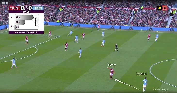 Гвардиола понимал важность Фернандеша для «Юнайтед», поэтому игроки «Сити» уделяли особое внимание португальцу: Нико О’Райли ориентировался на Бруну и регулярно выдвигался на игрока соперника.