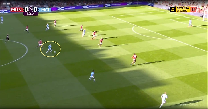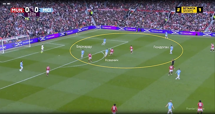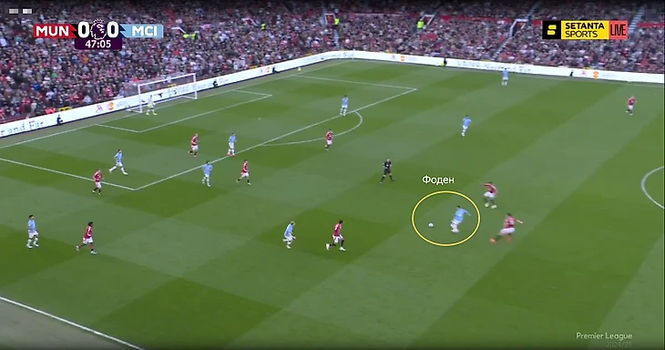 При этом «Сити» также мог извлекать из этого определенную пользу, так как в более открытом сценарии появлялось больше свободных зон. Например, здесь смогли отрезать большую группу игроков «МЮ» и выйти на чужую половину поля.