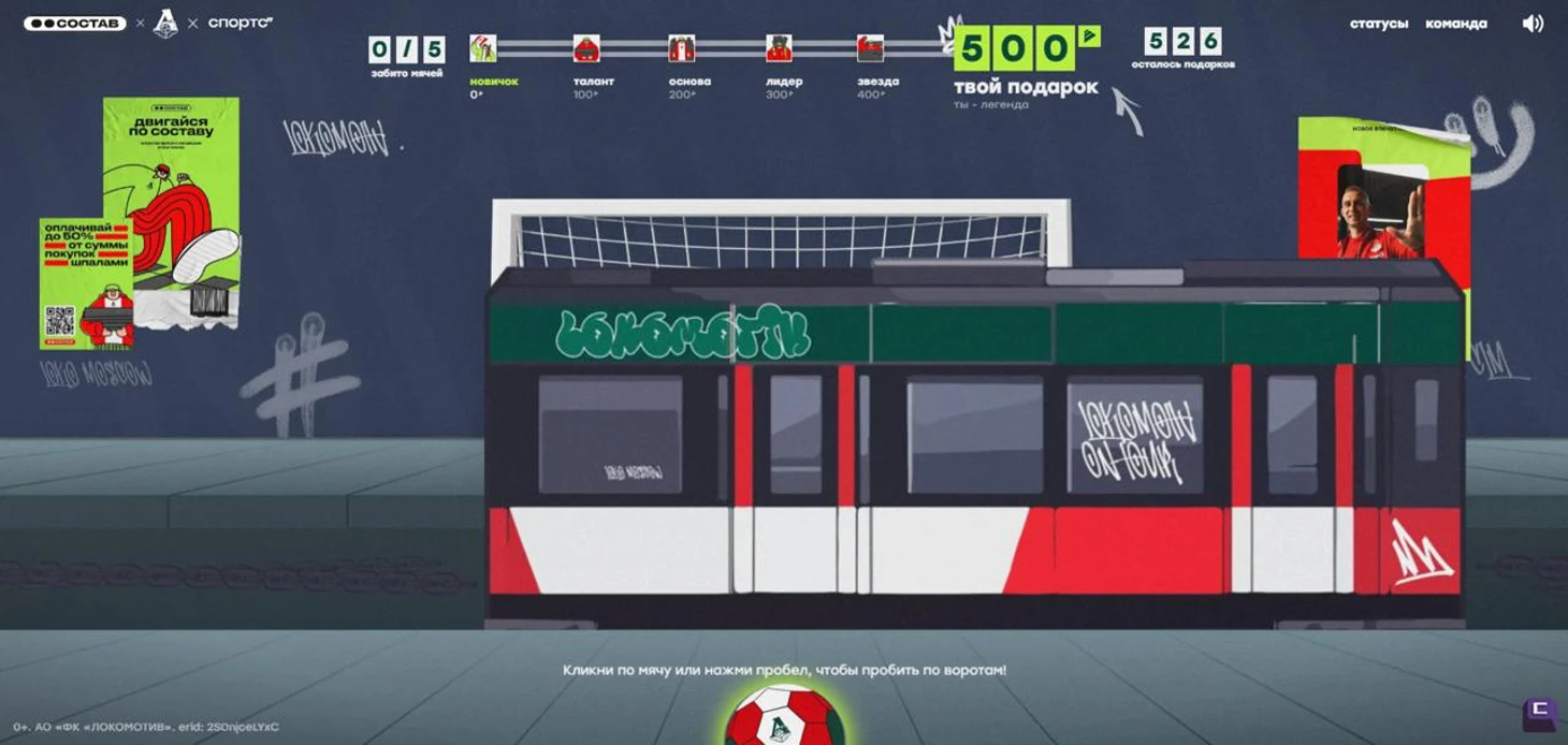 Болельщиков ждали пять уровней, в которых нужно было забить мяч в ворота. Казалось бы, задача простая – но не все так просто, когда перед воротами по рельсам проносится поезд, мешая точному удару. Игра получилась динамичной, весёлой и атмосферной – в стиле клуба и самой программы.