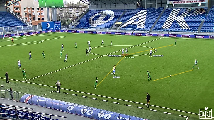 Что касается формации — от привычных для «Факела» 3-4-3, новый главный тренер перешел к 3-5-2, сделав Алексея Каштанова и Владимира Ильина главной целью для длинных передач от ворот, из глубины поля и навесов. Отдельно стоит отметить и изменение позиции Александра Ломовицкого — вместо привычного расположения в зоне правого инсайда, Ломовицкий занял позицию левого центрального полузащитника.