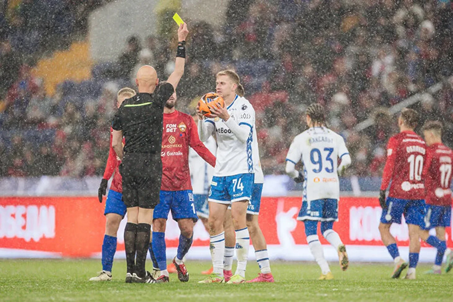 Карасев дал доиграть эпизод, так как мяч получил Хорхе Карраскаль, но потом свалили и его – так игра остановилась. Пока Нгамале оказывали помощь, ВАР не вмешался – по крайней мере, в трансляции не было такого титра. Динамовцы считают, что в этом эпизоде стоило показать красную карточку Глебову. Но игрок ЦСКА не получил даже желтой, а в следующей атаке он же заработал пенальти, после чего счет стал 3:1.
