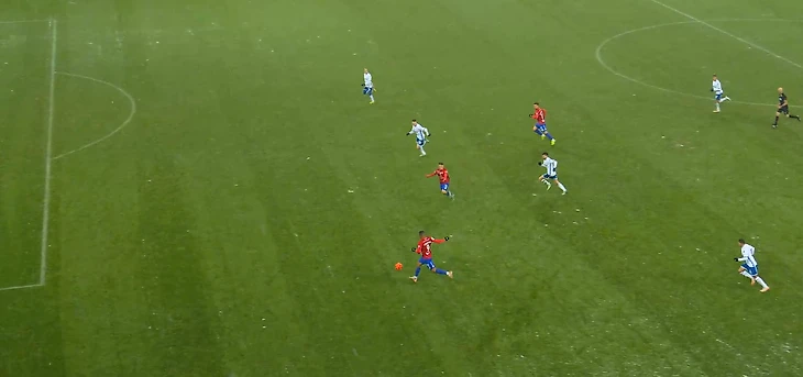 Тут тоже интересно. Гуарирапа – и правда в явном офсайде во время передачи с фланга.