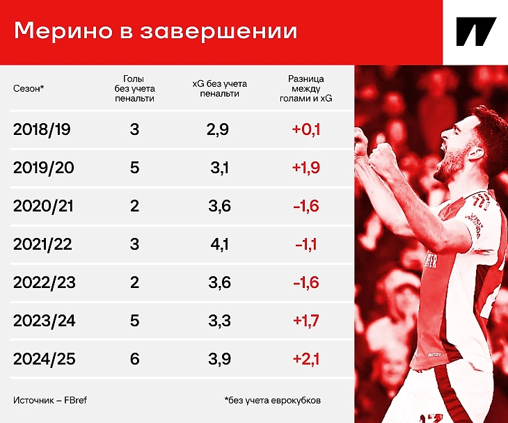 ● Отрезок Мерино на острие выдался мощным по цифрам. С игры больше забил только Мармуш, а еще Мерино установил личный рекорд по голам.