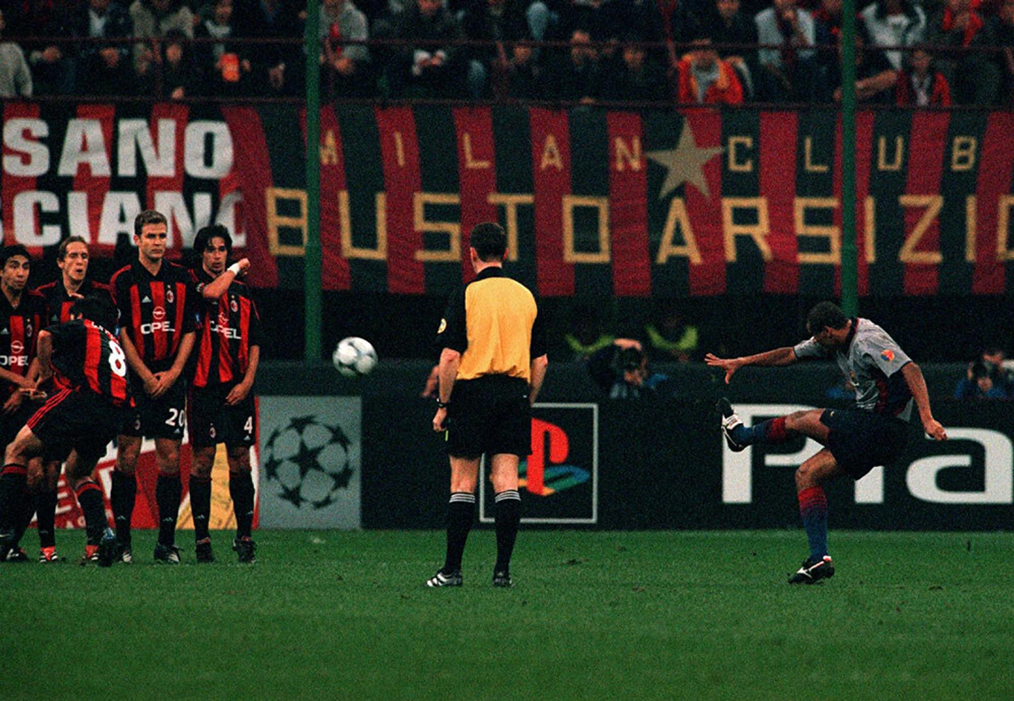 Зато Ривалдо положил шикарный хет-трик. Причем один из штрафных исполнил в оригинальном стиле, под стенкой. Бразилец положил дважды за первый тайм, но «Милан» к перерыву все равно вел 3:2, Деметрио Альбертини ответил двумя дальними ударами, а следом миланцев вывел вперед Хосе Мари. Но Ривалдо не унимался – и на 68-й минуте удачно пробил головой (3:3).