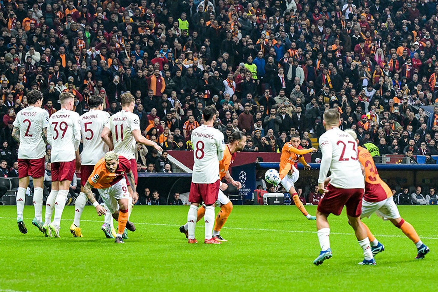 Групповой этап Лиги чемпионов-2023/24. К 28-й минуте «МЮ» уже вел у «Галатасарая» 2:0 благодаря голам Алехандро Гарначо и Бруну Фернандеша. Но следом наошибался Андре Онана: пропустил два несильных штрафных, летевших прямо в него – и «МЮ» упустил победу с 3:1.