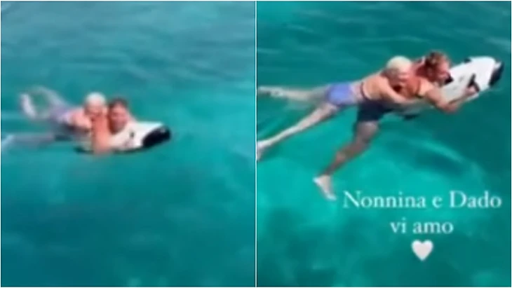 Еще за год до этого семья Фраттези делилась видео: футболист катал бабушку на доске от серфинга.