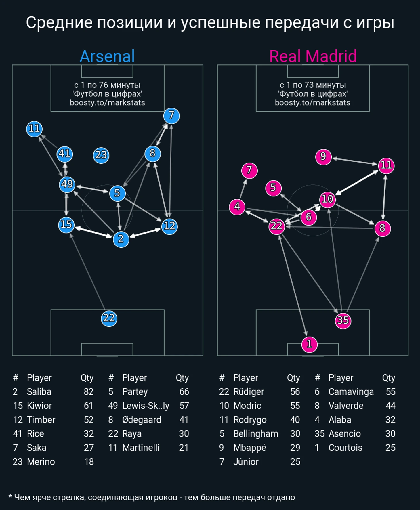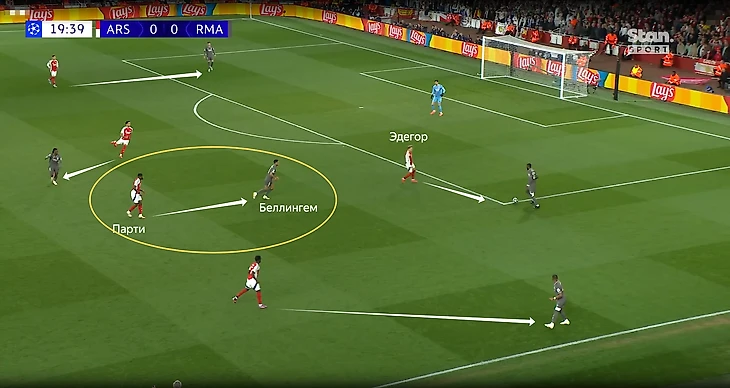Для «Арсенала» прессинг является более важной составляющей стиля: вторые в АПЛ по интенсивности прессинга (PPDA = 8.54). Но был большой риск завышать линию обороны против атакующих игроков «Мадрида», которые опасны на пространстве.