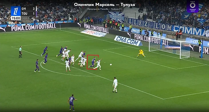 Вообще же Тулуза мало контролировала мяч (всего 32% владения) и мало комбинировала. Кроме того, Марселю было вполне удобно защищаться против 3-4-3.