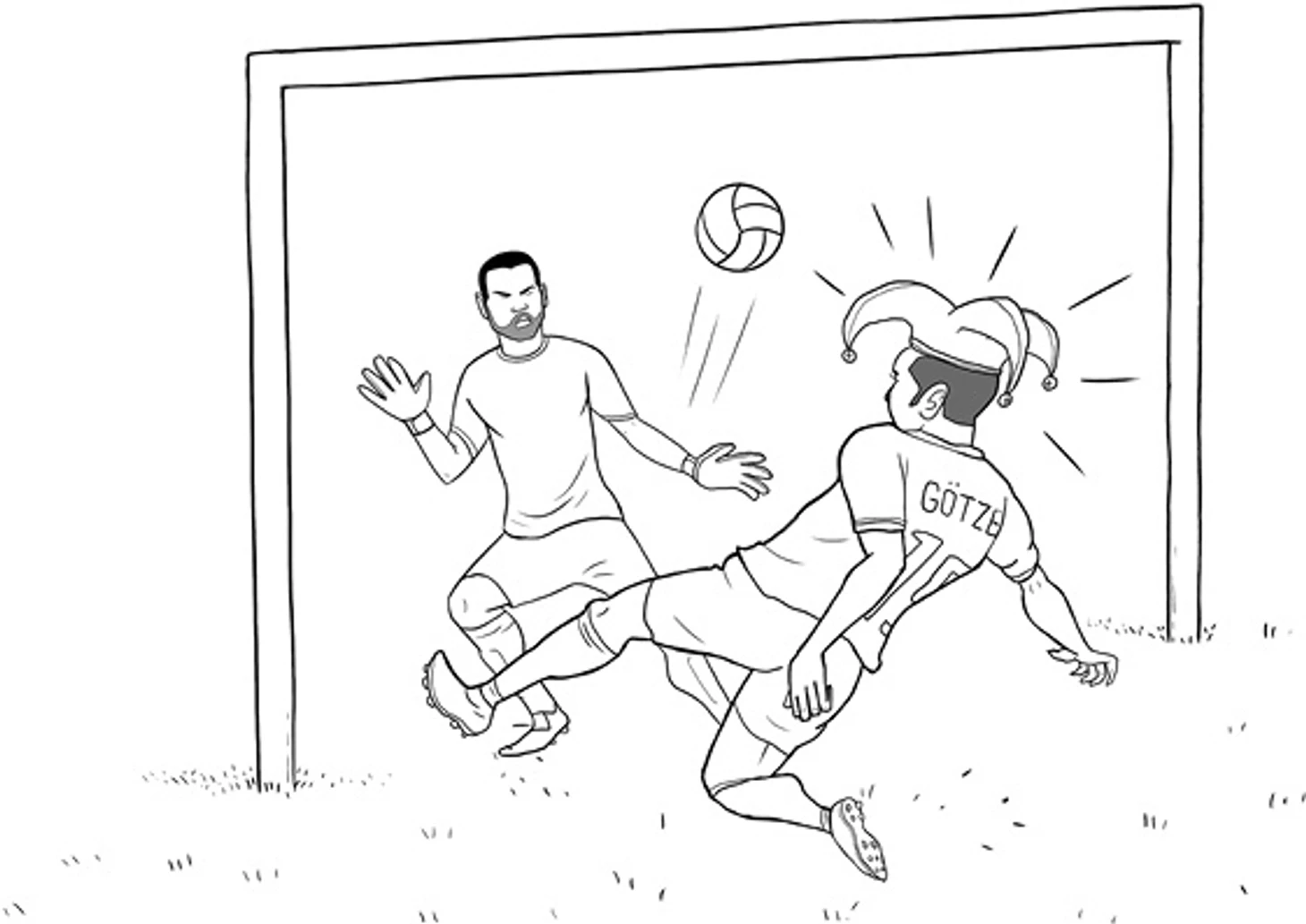 Зачем использовать три слова, если достаточно одного длинного? Так, по крайней мере, на неподготовленный взгляд, выглядит язык в Германии, где образное использование сложных существительных является чем-то вроде национального обычая. Один из примеров в футболе — «фальрюкциер», немецкий термин для обозначения удара через себя, который буквально переводится как «исполнение с падением назад» (другой — «флюгкопфбаль», для пикирующего удара головой, который означает «удар головой в падении»). Королем ударов через себя в Германии был Клаус Фишер, чей фотографический удар через себя в ноябре 1977 года в товарищеском матче против Швейцарии был признан «голом века» в опросе, проведенном телеканалом ARD в 1999 году.