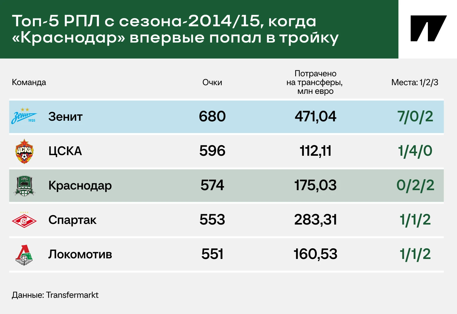 «Краснодар» не конкурировал с «Зенитом», зато тихо подбирался к его преследователям.