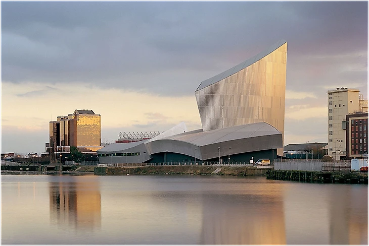 Открыт в 2002 году. Музей расположен на участке с видом на Манчестерский судоходный канал на Траффорд-Уорф-роуд, Траффорд-Парк , в районе, который во время Второй мировой войны был ключевым промышленным центром и, следовательно, сильно пострадал от бомбардировок во время Манчестерского блица в 1940 году. На открытии музея архитектор Даниэль Либескинд сказал, что стремился «создать здание, ... которое эмоционально побуждало бы душу посетителя к порой неожиданным открытиям». Либескинд представлял себе «созвездие, состоящее из трёх взаимосвязанных осколков», где каждый осколок был бы остатком воображаемого земного шара, расколотого конфликтом. Эти фрагменты, в свою очередь, символизировали воздух, землю и воду, и каждый из них образовывал функционально обособленную часть музея.