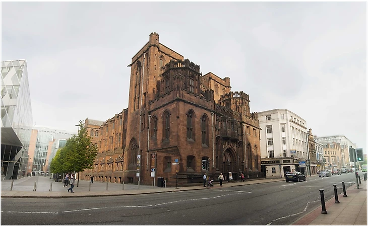 На площади Альберт-сквер в 1877 году из твердого песчаника открыто гигантское здание готического стиля. На ее 85-метровой башне установлены часы и колокольный карильон. В Большом зале на втором этаже стены расписаны прерафаэлитом Фордом Мэддоксом Брауном.