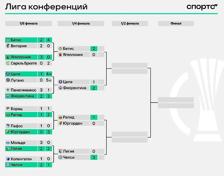 Преимущество в матче было очевидным: 28:3 по ударам в пользу испанского клуба. «Бетис» очень близок к выходу в полуфинал – и в этом случае попадет на победителя пары «Целе» – «Фиорентина».