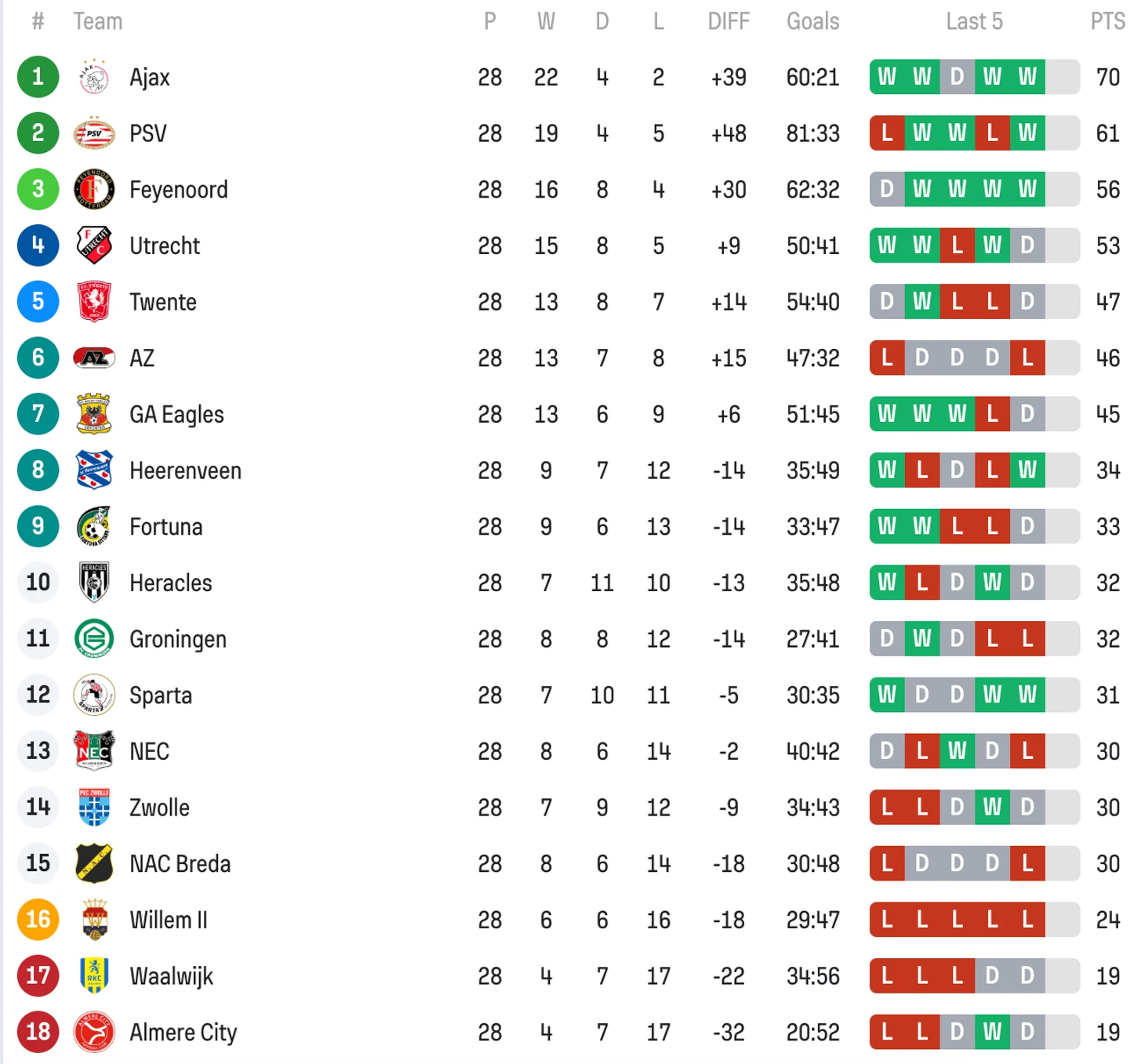Превью 29-го тура Эредивизи🇳🇱 | Ждём уверенные победы «Аякса» и ПСВ, потерю очков АЗ в Алмело, сухой матч «Фейенорда»