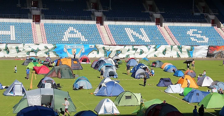 Немецкая «Ганза Росток» предлагала провести летнюю ночь в палатках прямо на поле стадиона.