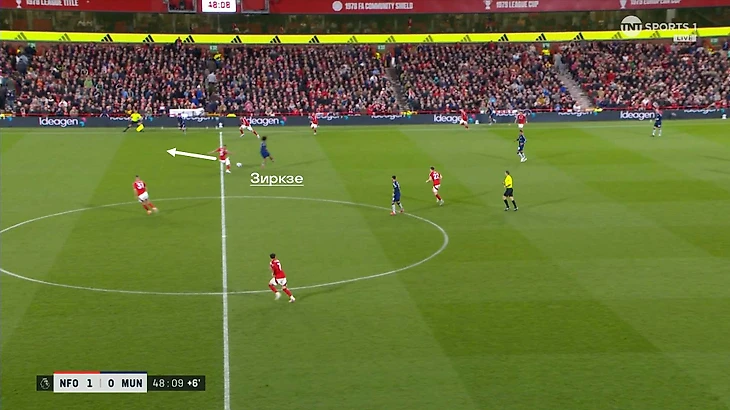 Вероятно, Зиркзе должен был помочь на стандартах. Но у ворот «Фореста» он так и не добрался до мяча, а «МЮ» защищался всего от трех угловых. При этом все равно создал момент из глубины. Получил длинный пас, отдал в касание на Гарначо.