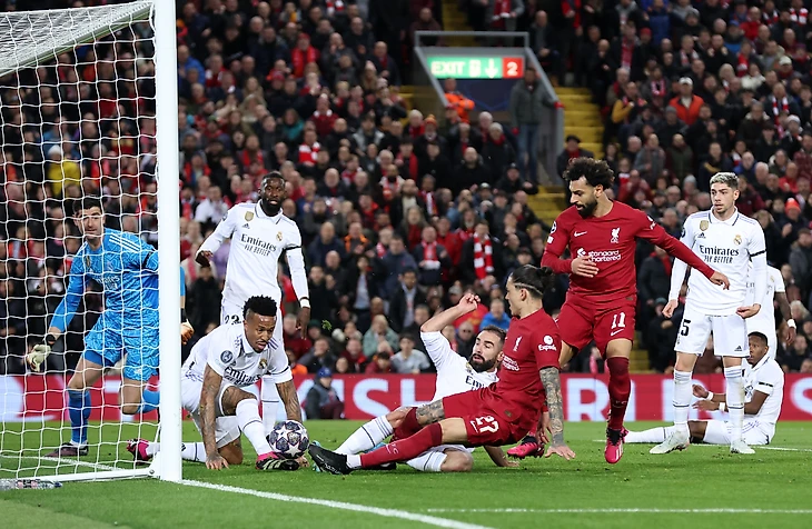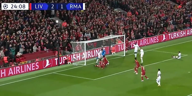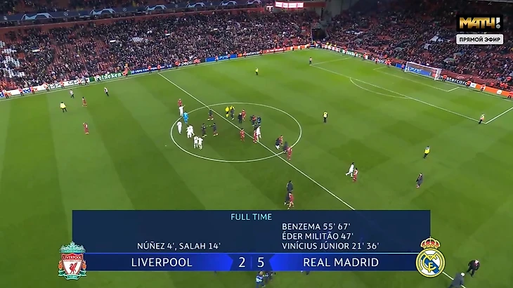 Через десяток минут после стартового свистка Иштвана Ковача болельщики «красных» смогли насладиться игрой своих любимцев. Нуньес, а затем и Салах оформили два гола в ворота Куртуа. Казалось, неплохой задел. На 21-й Винисиус с передачи Бензема правой ногой отыграл 1 мяч. Очень важный момент случился для «сливочных» на 25’, когда Милитан не дал игрокам в красной форме забить третий. Всё могло пойти совершенно иначе, не будь защитник таким расторопным.