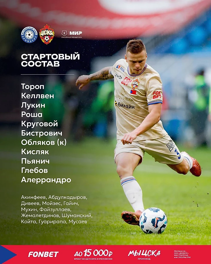 Разве кого-то из болельщиков ЦСКА может разочаровать игра, когда есть результат? Большая ротация не помешала добиться красно-синим положительного результата. Армейцы забрали очередную важнейшную победу и набрали 47 очков в турнироной таблице. Виллиан Роша однозначный MVP матча, бразилец просто съел всех игроков «Оренбурга». Также хочу поздравить Славу Торопа с сухим матчем. Победная серия нашей команды не может не радовать, очень рад, что в клубе появилась семейная атмосфера, которая, безусловно, помогает добывать результат на поле. Не забывайте подписываться на тг-канал «Красно-синие», не пожалеете! До скорых встреч!