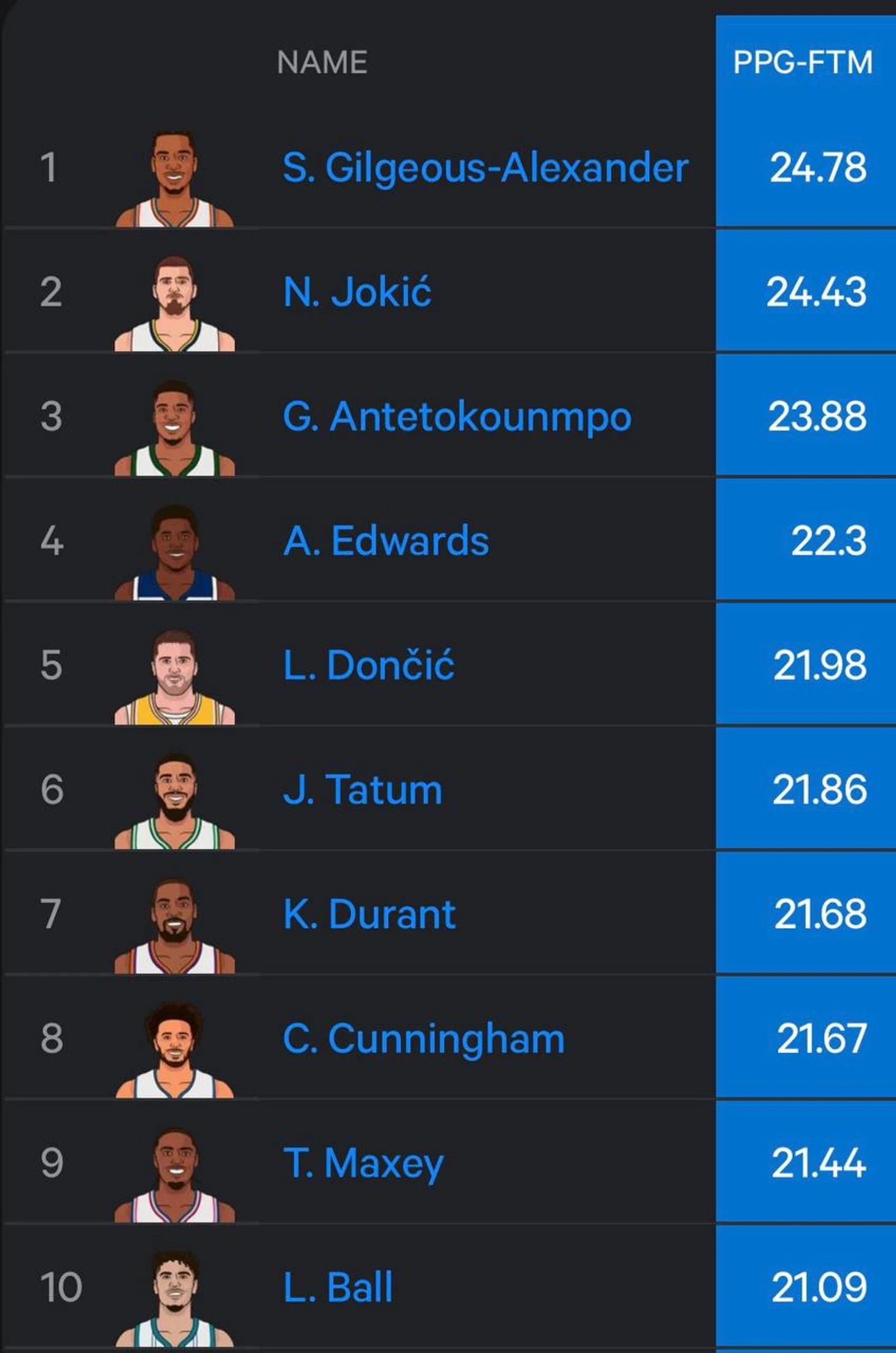 Как мы все знаем, Шэй ведет лигу в скоринге. Но что будет, если забрать у него излюбленные штрафные? Взглянем на список лучших снайперов лиги без бросков с линии.