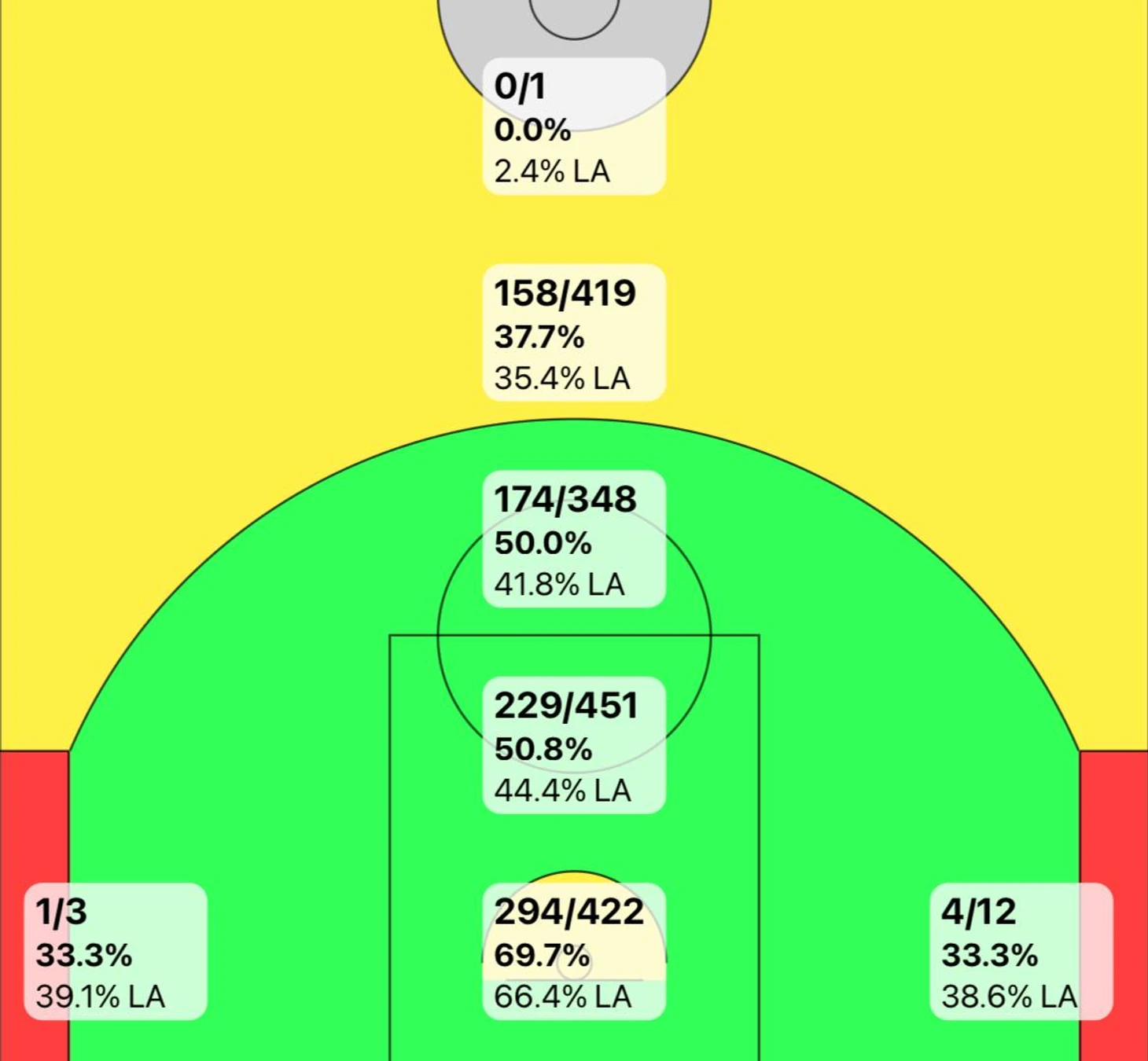 Взглянув на шот-чарт Шэя можно увидеть, что кроме углов, из которых он почти не делает попыток, на площадке нет зоны, где он заметно не превосходит средние показатели игроков в лиге.