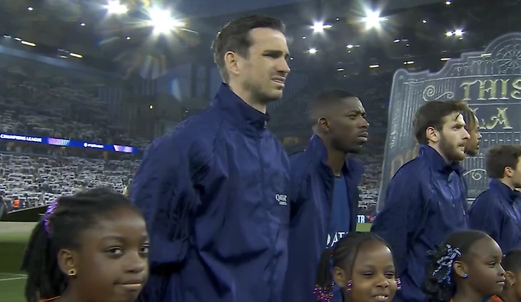 Когда команды выходили на поле и выстроились для главного предматчевого ритуала, они вдруг услышали гимн Лиги Европы вместо той самой мелодии ЛЧ, пробирающей до мурашек.
