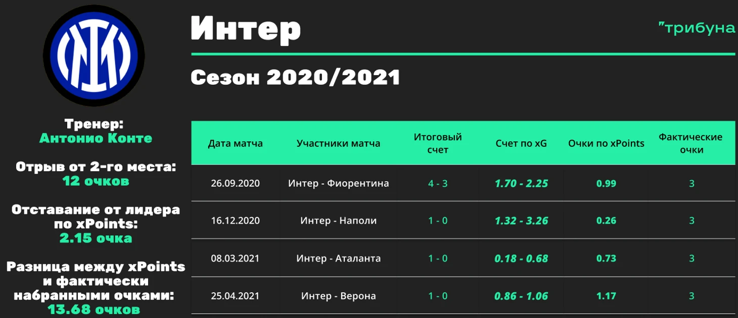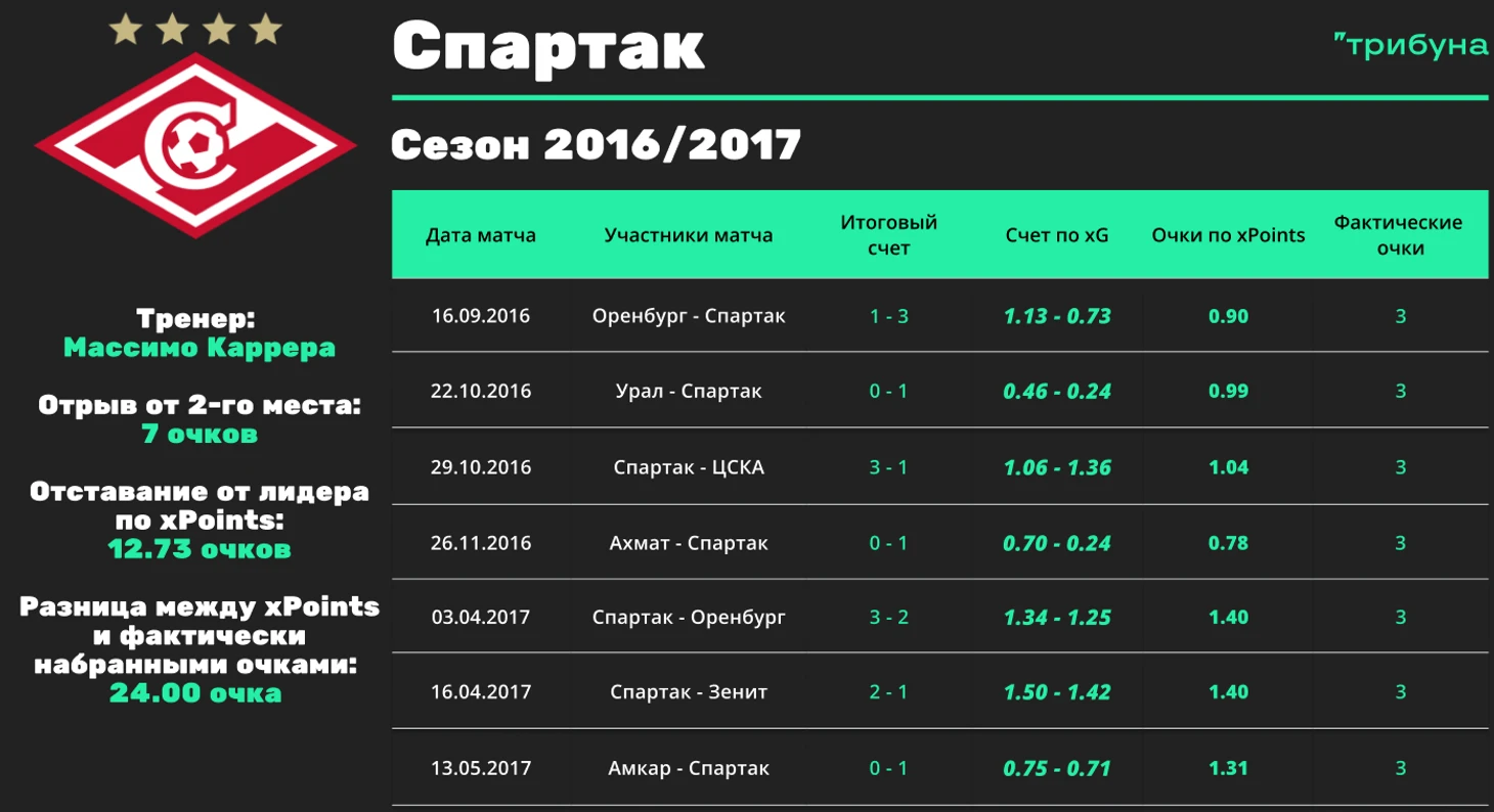 11.77 очков отставания от лидера по xPoints – это уже серьезное значение, не говоря о по сути лишних 20 набранных очках сверх «заслуженных».