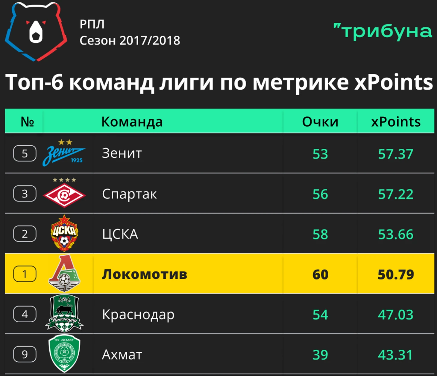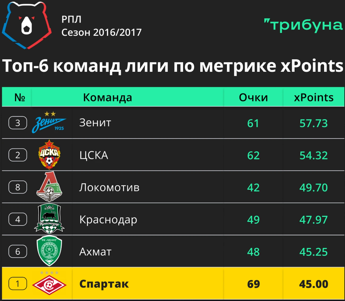 Среди любителей статистики бытует мнение (и оно справедливо), что xPoints – одна из самых точных метрик в футболе.