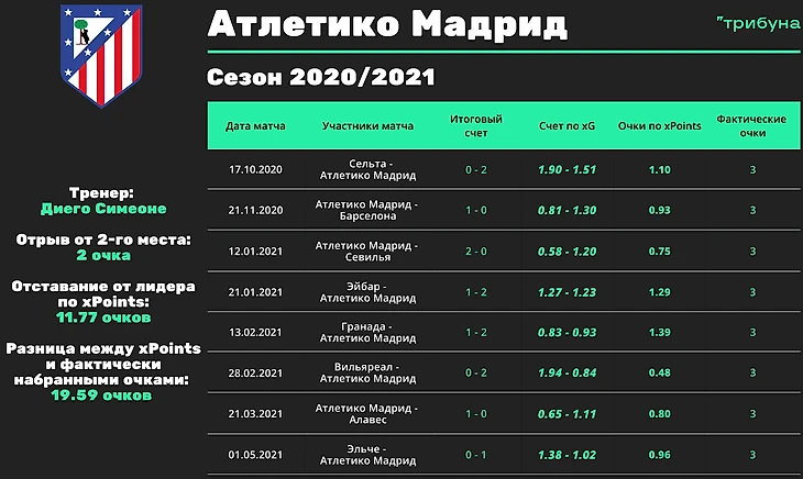 Вторая команда-аномалия из Ла Лиги – это «Атлетико Мадрид» образца 2020/2021.