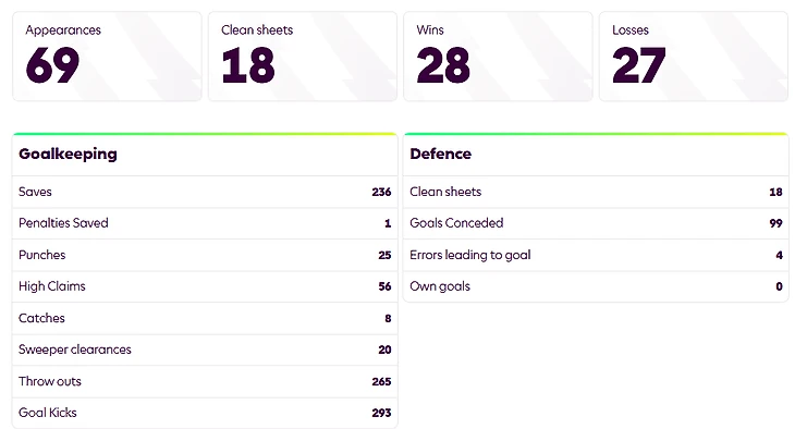 При этом есть и обратная сторона этой статистики: всего 28 побед при 27 поражениях, 99 пропущенных мячей, а также четыре ошибки, приведшие к голам.