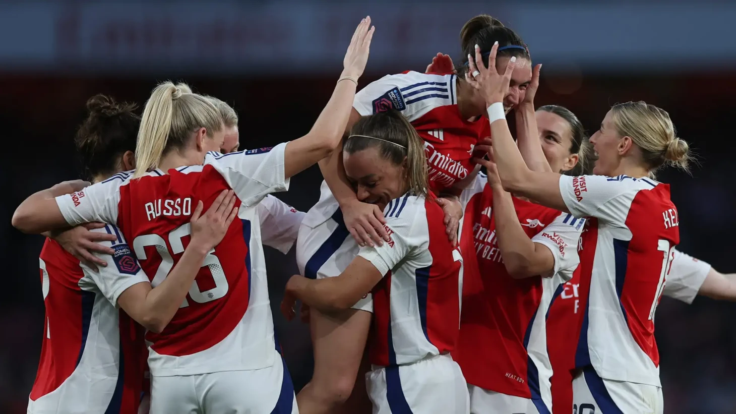 Один из лучших матчей сезона (если не лучший) – разгром «Реала» в ответном четвертьфинале на «Эмирейтс». После гостевого поражения подопечные Слегерс показали великолепный футбол и мало что дали сделать гостям. Алессия Руссо отметилась дублем, а арендованная у «Сити» Клои Келли сделала две голевые.
