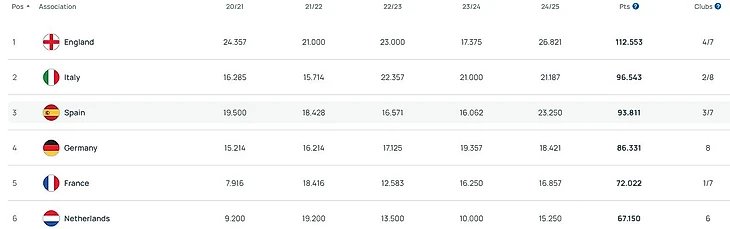 Другая статистическая интрига – сколько английских клубов выступит в ЛЧ в следующем году? Я уже писал о том, что теоретически у Англии есть вероятность выставить семь команд. Пять уже гарантировано – рейтинг Англии давно ушел в отрыв.