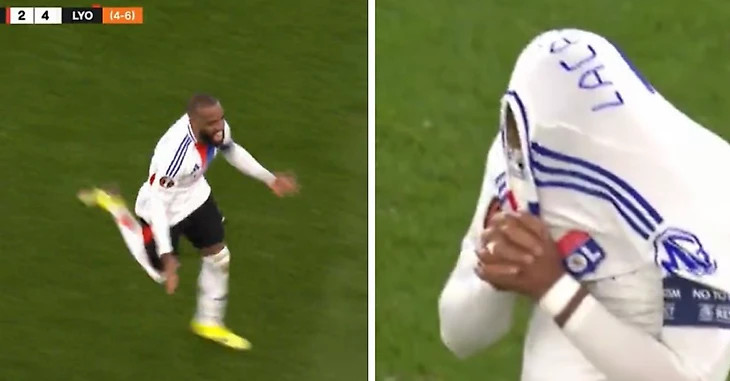 А вот эмоции форварда «Лиона» Александра Ляказетта: после 4-2 и 4-5 для его команды.