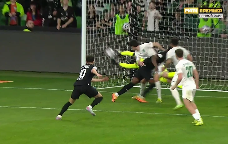 А уже через три минуты Сперцян покатил мяч в штрафную, Гандри в подкате прервал передачу, но Кевин Ленини подхватил мяч и перекинул Шелию.