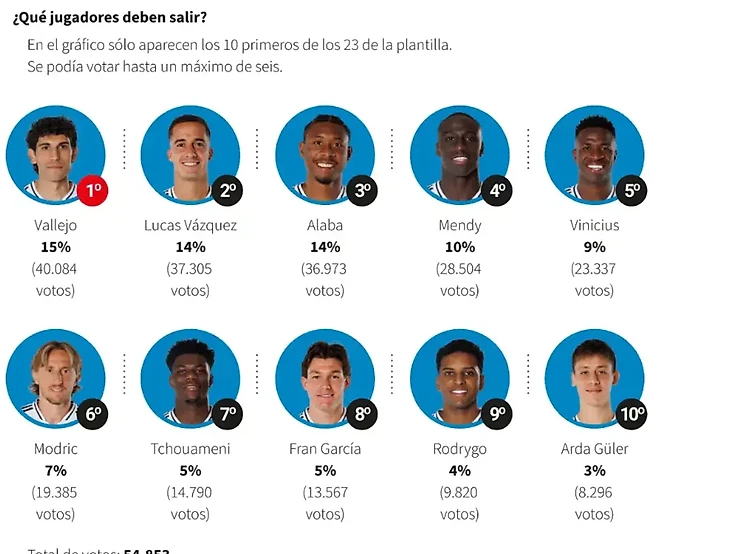 В список тех, от кого следовало бы избавиться, попали такие футболисты, как Хесус Вальехо, Лукас Васкес, Винисиус, Лука Модрич, Родриго и еще несколько звезд «Реала».