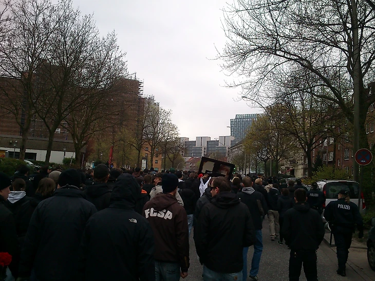 Но попасть в тот раз не получилось даже с билетом на руках. Вы спросите, как такое возможно? Ну, у меня есть легкий бзик на соблюдение неписаного фанатского этикета, особенно в гостях. В тот раз федерация футбола и полиция запретили гостям из Ростока посещение игры и они просто приехали в город и прошлись фан-маршем по району Альтона. Фанаты «Санкт-Паули» в знак солидарности приняли решение игру не посещать и также совершили променад по городу, но только остановились у стадиона, положили траурный венок в память о фан-культуре и ушли к локальному бару «Джоли Роджер». Потом конечно началась беготня по городу с полицией, но это совсем другая история…