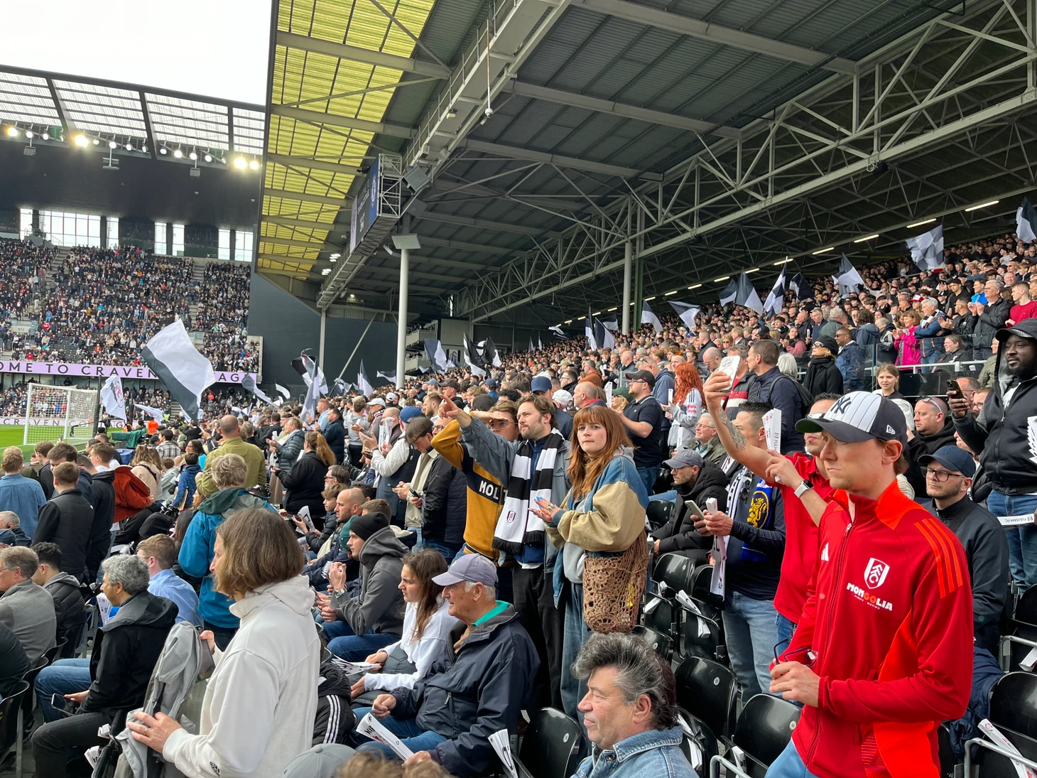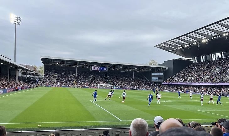 Еще раз отмечу, «Крэйвен Коттедж» это прекрасный небольшой олдкульный стадион с трибунами на любой вкус. Тут и классическая фанатская за воротами, и историческая центральная трибуна с деревянными креслами (на фото слева) и ультрасовременная с видом на Темзу (там самые дорогие места, а стоимость сезонных абонементов достигает безумных 3 тыс. фунтов в год) – выбирай что нравится (и что позволяет кошелек, конечно).
