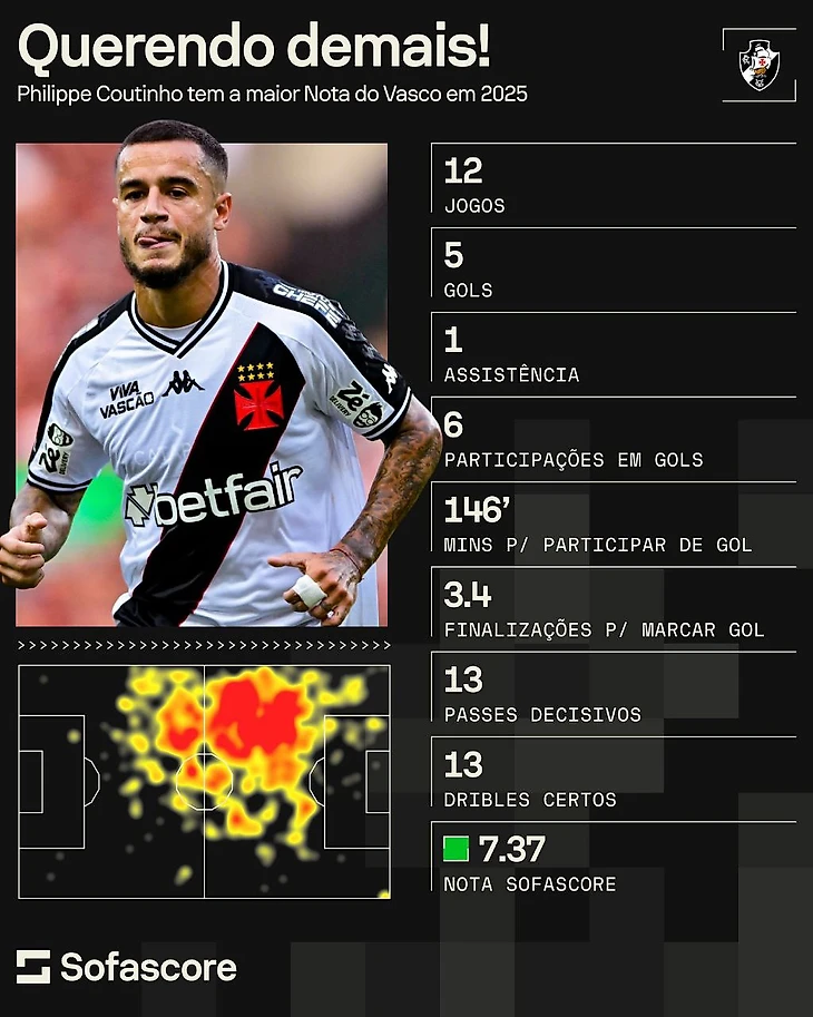 Филиппе Коутиньо приехал в «Васко» еще в середине 2024 года, полный ожиданий, что он, талантливый воспитанник после десяти лет в Европе поведет команду к высоким целям и станет яркой звездой чемпионата. Однако полузащитнику потребовалось некоторое время, чтобы для начала вылечить все болячки и понять что же собой представляет современный Бразилейрао? И теперь демонстрирует хорошую игру на старте сезона.
