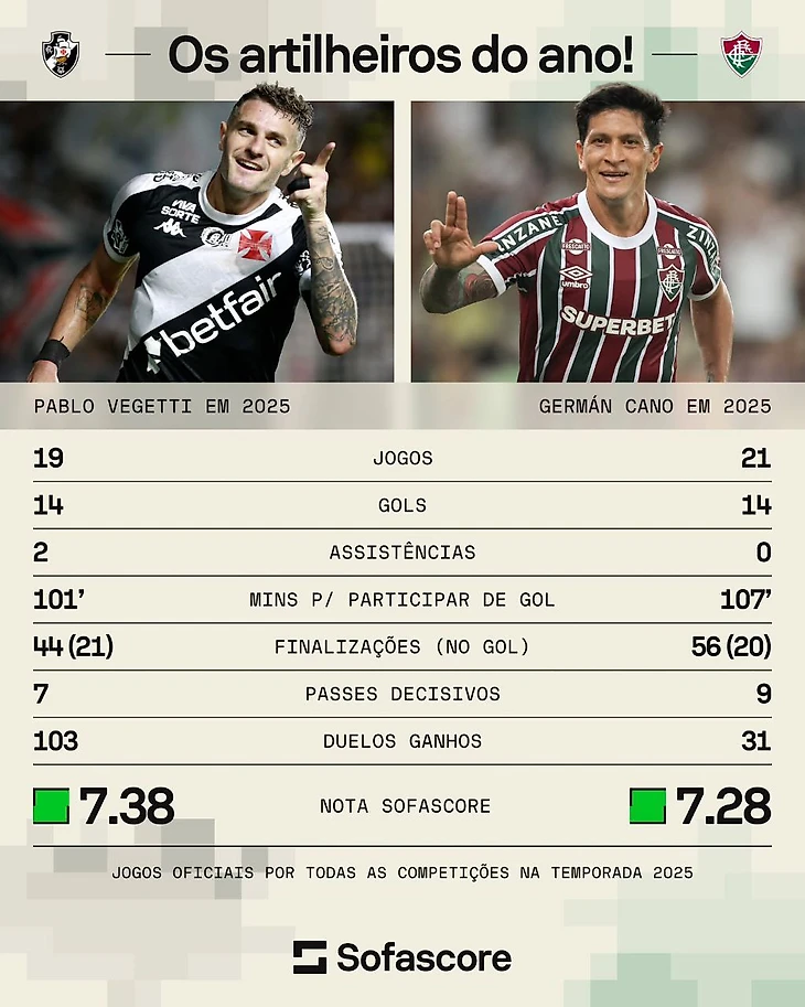 Пабло Вегетти, один из лучших бомбардиров Бразилии в 2024 году (23 гола), является для «Васко» примером на поле, душой и лидером. Капитан «Крузмальтино» начал очередной сезон с хороших показателей и готов к Бразилейрао. В Кариоке Вегетти забил семь голов в 12 матчах, да и старт чемпионата Бразилии и Судамериканы выдался на славу, сейчас они с Кано лучшие бомбардиры Бразилии.
