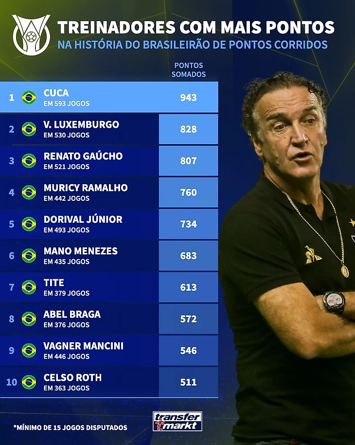 Тренеры с самым большим количеством набранных очков и средним количеством в пересчете на матч