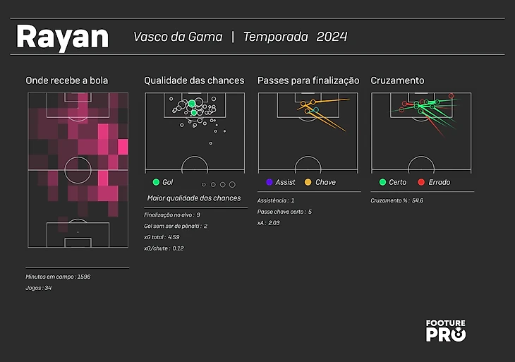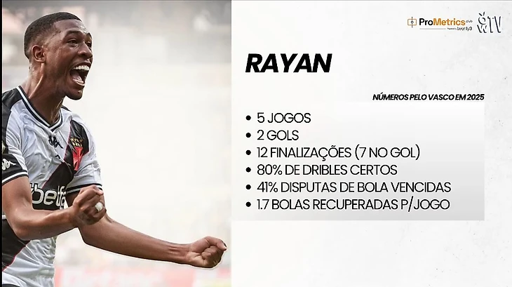 В этом сезоне Райан становится очередной жемчужиной «Васко», которая либо поведет к вершинам, либо (что более вероятно) по быстрому заиграется и будет продан миллионов за 10 первому встречному. В начале года парень завоевал доверие Карилле и начал набирать игровое время после возвращения из Селесао U-20. С тех пор он забил два гола в пяти играх и заслуженно выходит в старте в чемпионате.