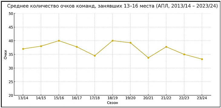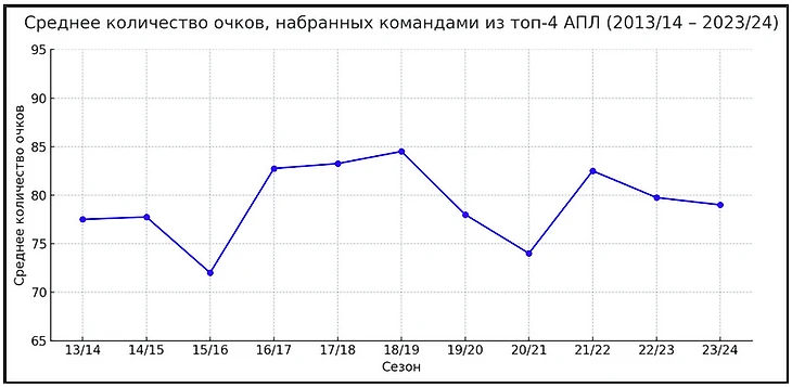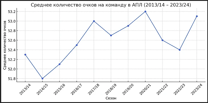 Команды регулярки АПЛ медленно, но верно стали набирать больше очков за 10 лет